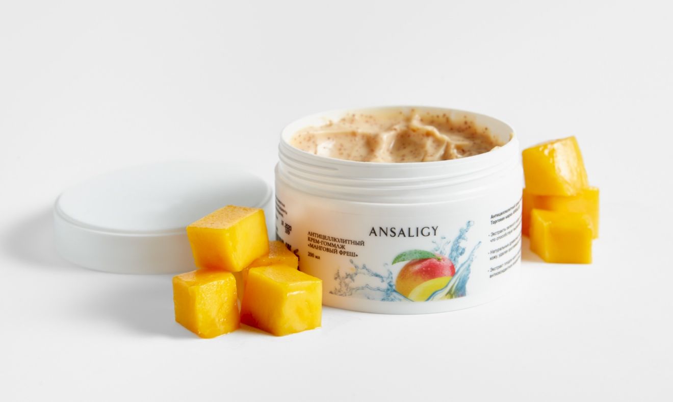 Антицеллюлитный крем-гоммаж «Манговый Фреш» мягко полирует кожу, повышает её упругость и помогает выровнять рельеф проблемных зон.