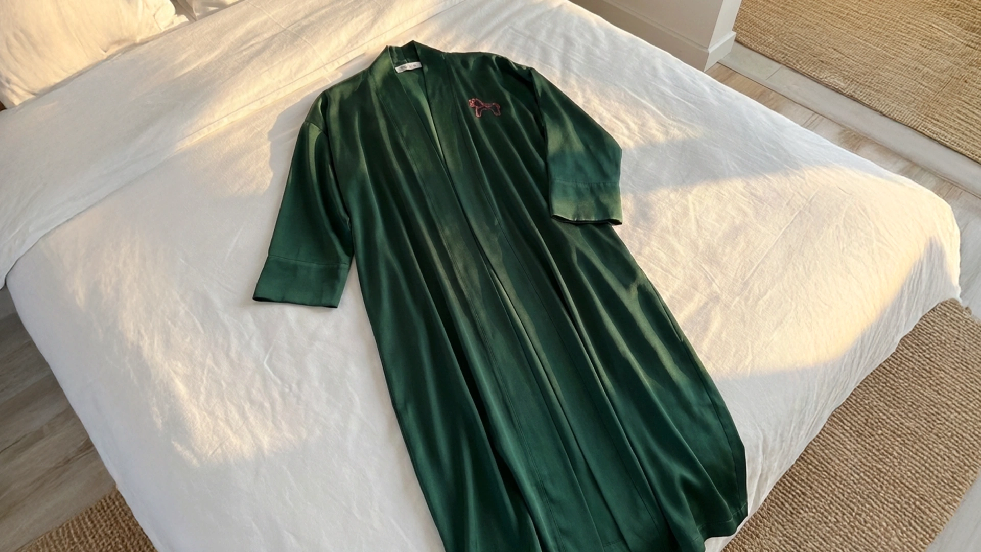 Домашний халат в изысканном изумрудном цвете. Нежный и лёгкий он создан для тех моментов, когда хочется окружить себя гармонией и красотой.
