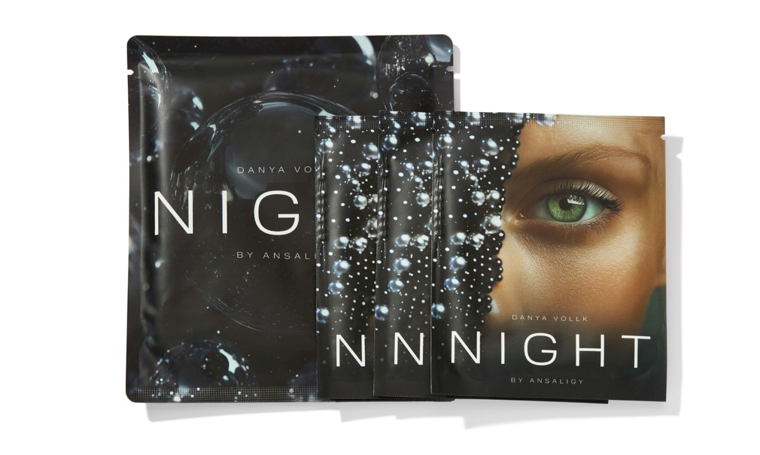 • Лифтинг-патчи для глаз «Night» ANSALIGY x Danya Vollk, 3 шт – снимают отечность, разглаживают кожу и придают взгляду сияние